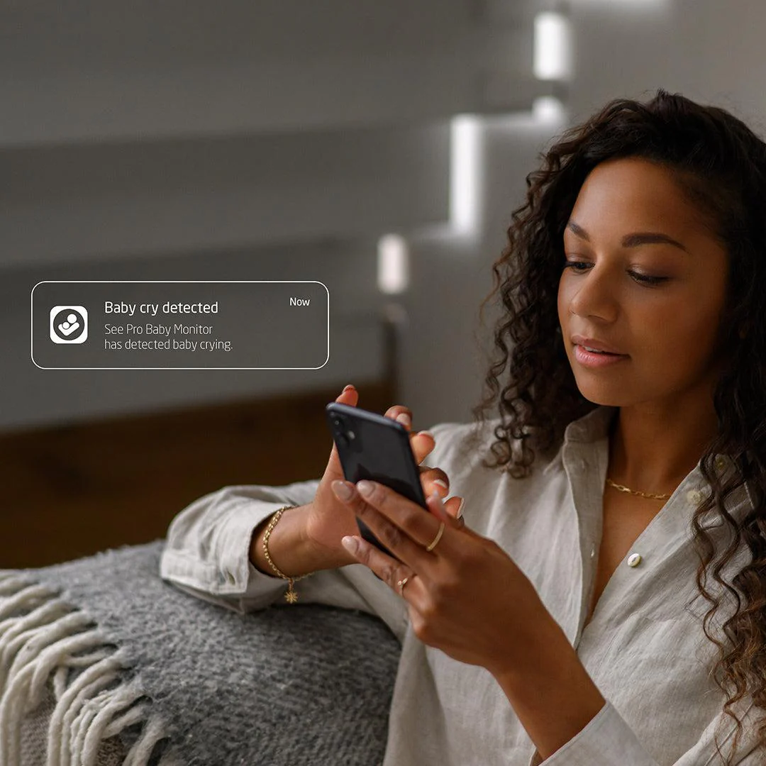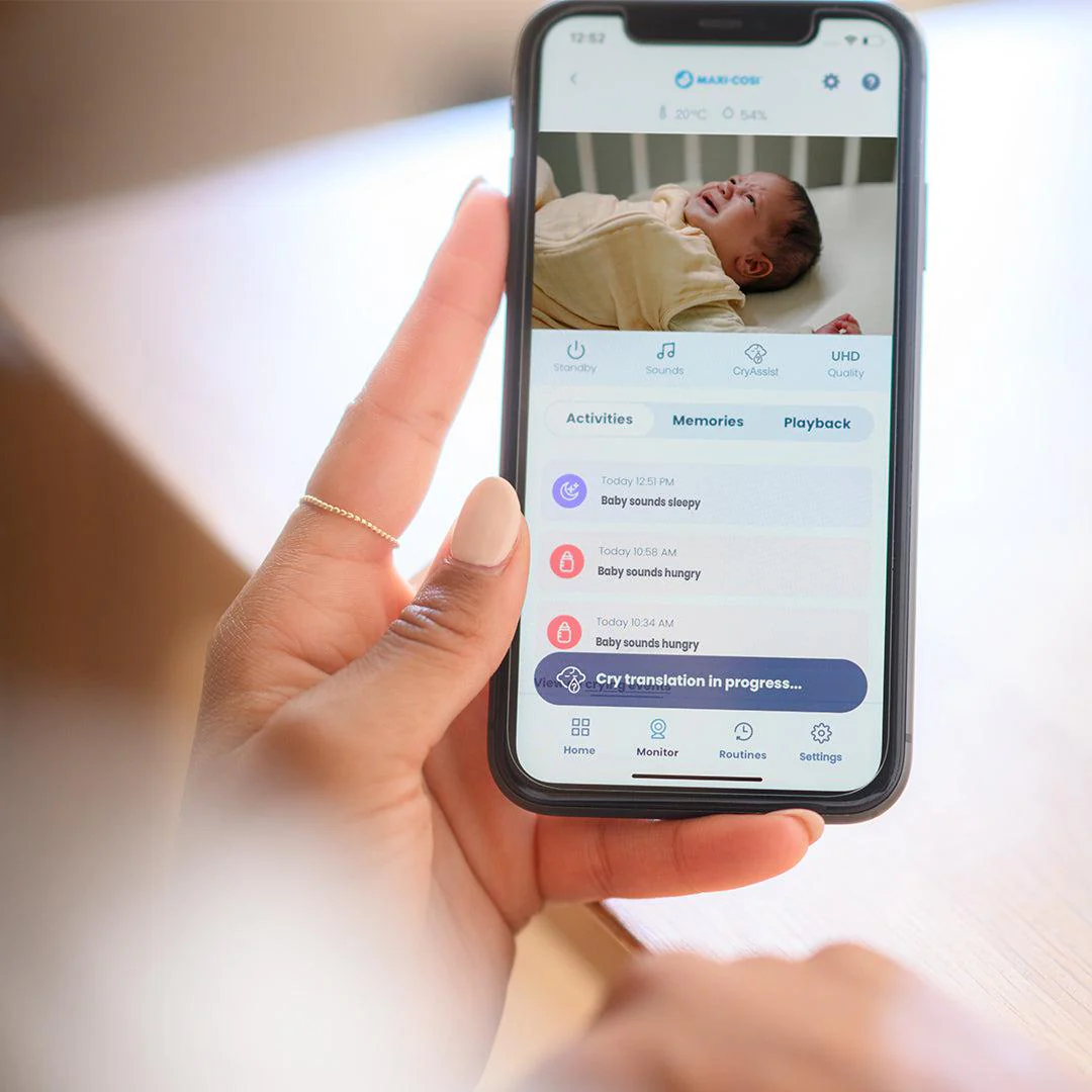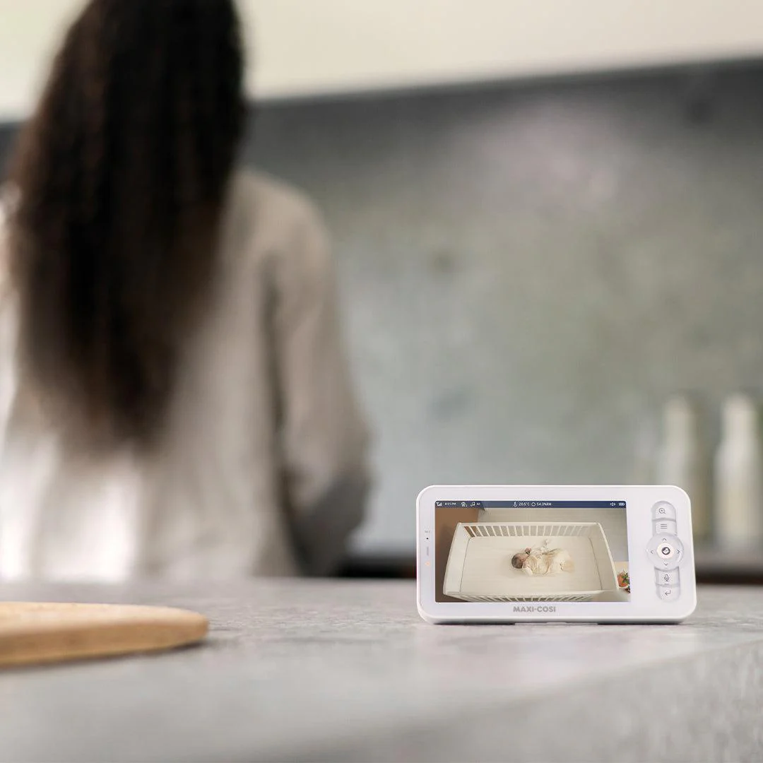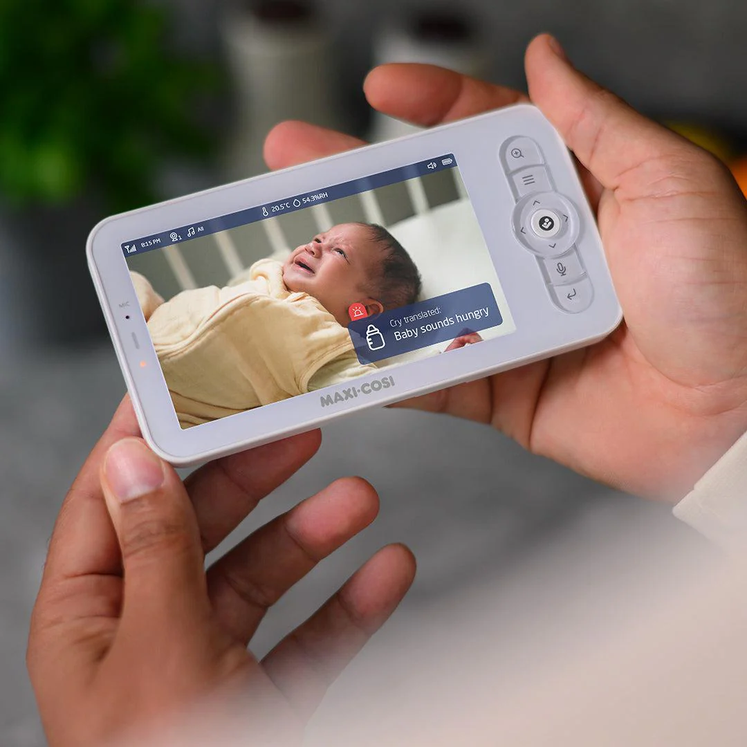 The Maxi-Cosi See Baby Monitor Pro in White/ Natural features advanced CryAssist technology powered by Zoundream, which not only detects your baby’s cries and notifies you, it also automatically translates their cries and helps you understand if they’re: Sleepy, Fussy, Hungry, Gassy or Agitated. It even gives tips on how best to soothe them. Connected via the app to your phone in Ultra HD and live streamed on the 5” parent screen, you can pinch & zoom in, to keep a close eye on your baby, even in the dark at night.