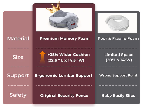 Crafted with 100% safe memory foam, our breastfeeding pillow offers cloud-like comfort and firm support—keeping baby at the perfect height for better latching, while relieving mom’s arm fatigue.