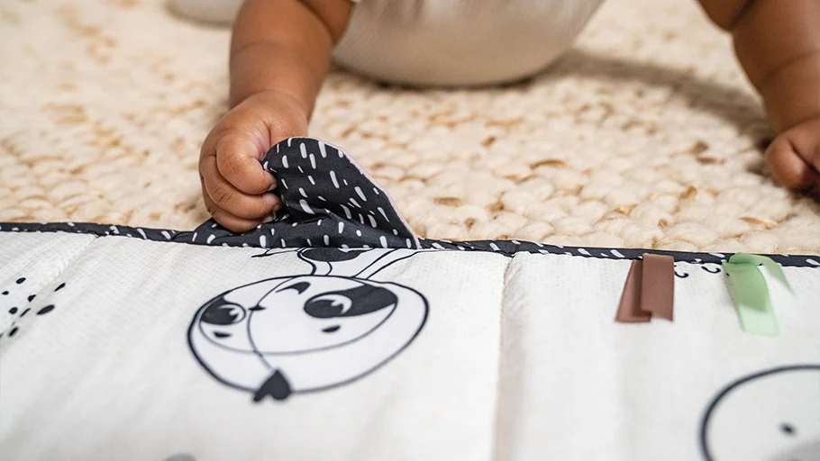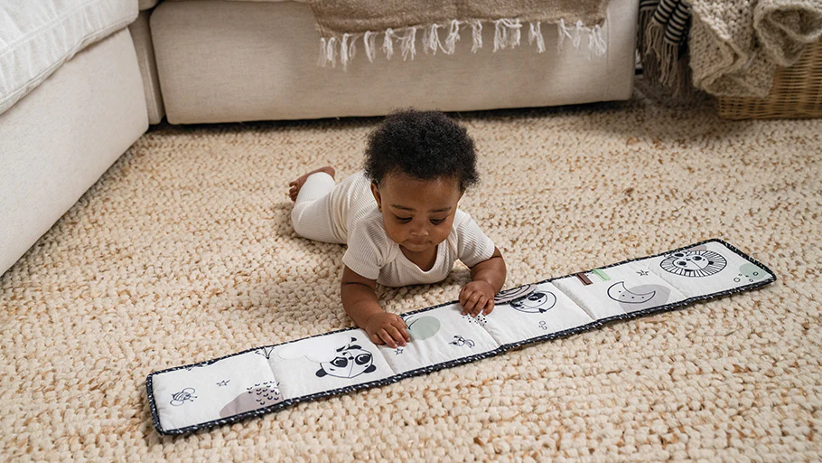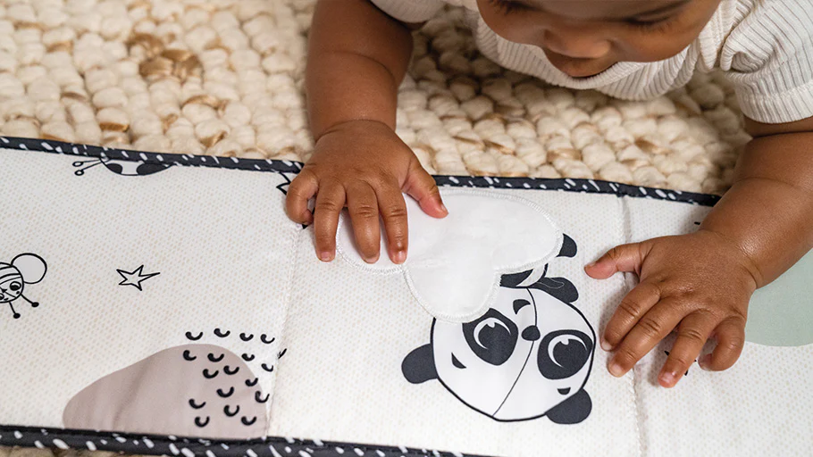 - Encourages babies to stay longer in tummy time with its fun activities and trendy design.